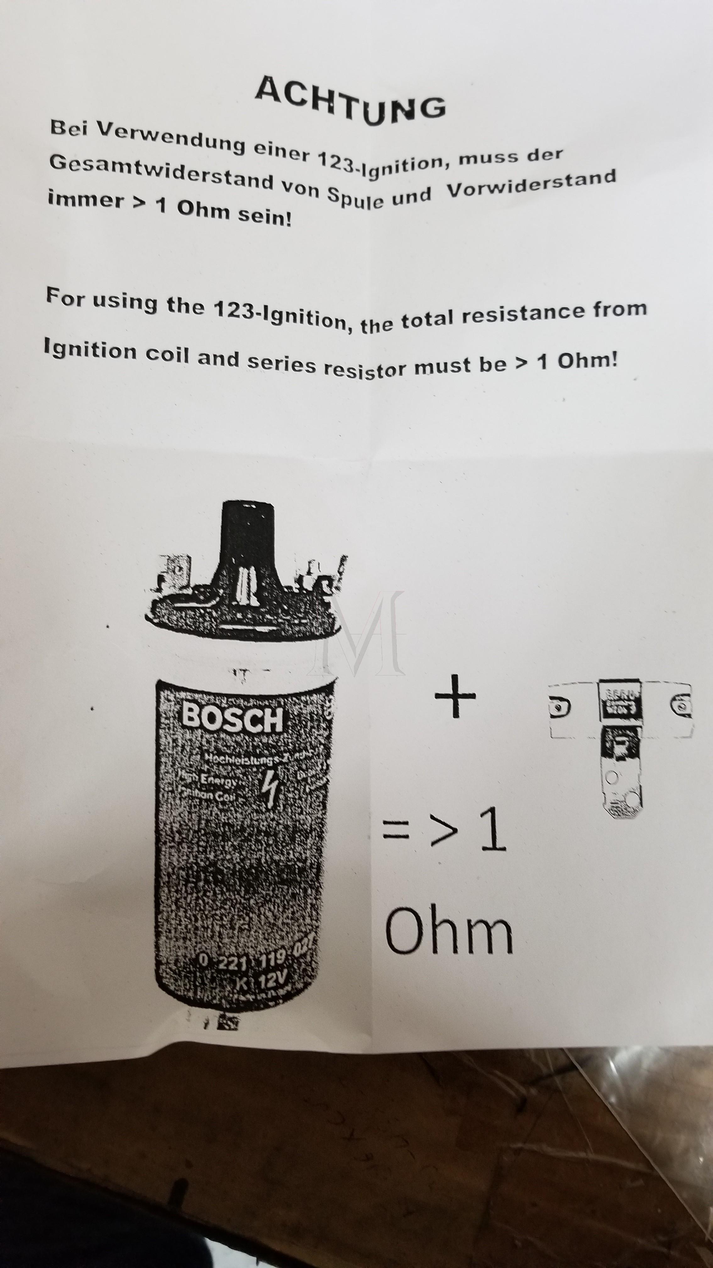 Please read the installation manual carefully. It contains more information about motor- and distributor numbers, static timing and the advance-curves, the specifications of the 123ignition and a step-by-step description of the installation procedure.